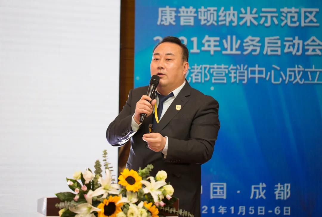2021年1月6日,“新起點 新未來”康普頓納米示范區2021年(成都)業務啟動會召開。青島康普頓科技股份有限公司執行總裁楊奇峰先生、納米事業部總經理潘洋先生、市場總監王人飛先生、服務部總監徐成先生,青島康普頓環??萍加邢薰究偨浝硗鯘檹娤壬?、副總經理邢輝先生、銷售總監滕厚海先生,以及各大區經理悉數出席。2020年,是不平凡的一年,我們經歷了一場沒有硝煙的戰爭,我們一起度過了艱難的2020。2021已經到來,我們將攜手并肩,創造我們的未來。